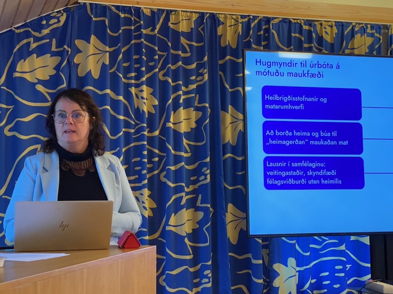 15.11.2025Eftir smá kaffihlé eftir aðalfundinn var komið að fyrstu fræðslu þingsins en um það sáu þær stöllur Guðný Jónsdóttir kennari við Matvælaskólann í Kópavogi og Guðlaug Gísladóttir næringafræðingur og efnið var maukfæði og þykkingarefni, en eins og flestir vita er kyngingarvandamál vaxandi í samfélaginu þar sem þjóðin er að eldast. Guðlaug reið á vaðið með sitt erindi um prótein og þykkingarefni og